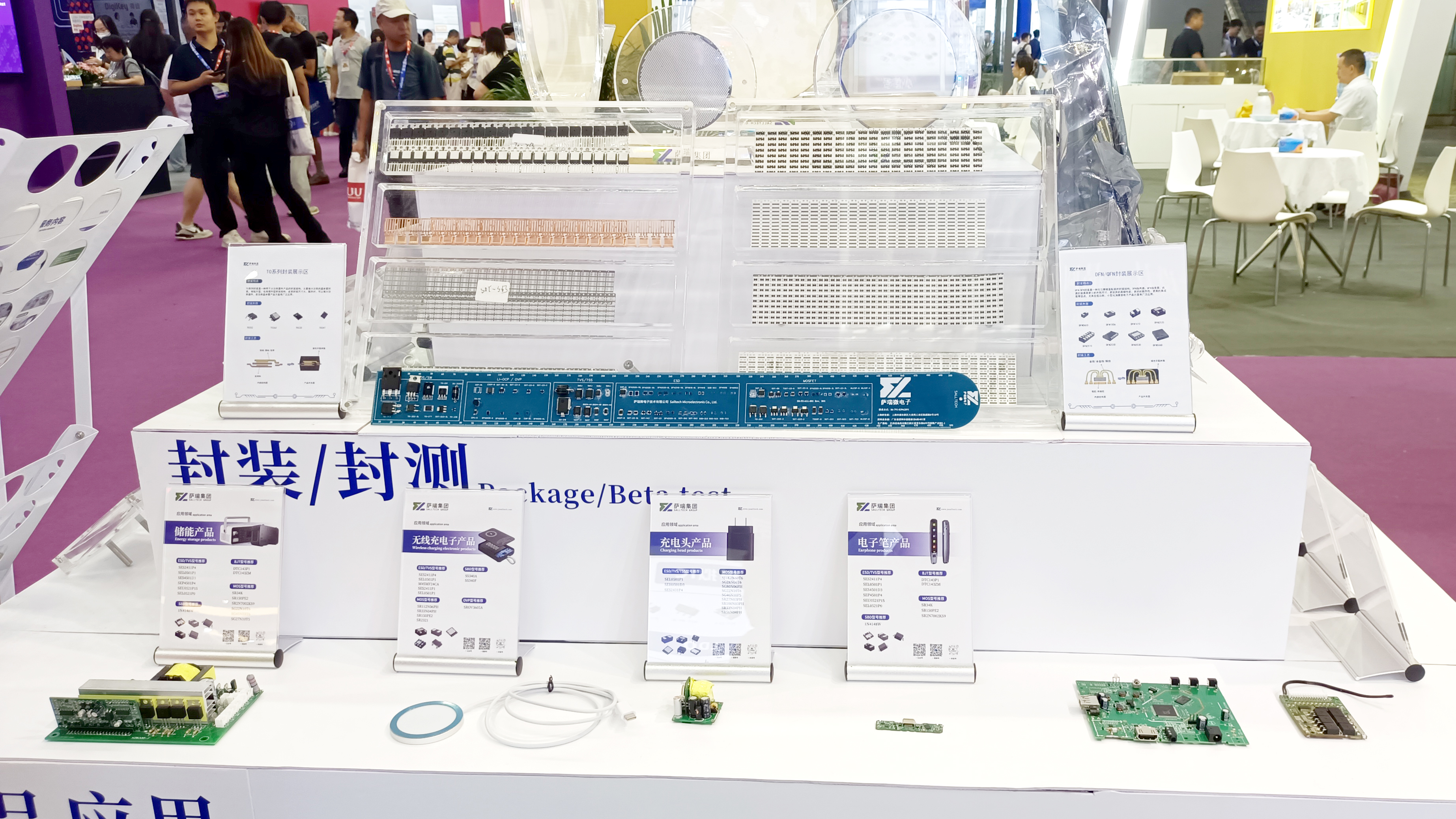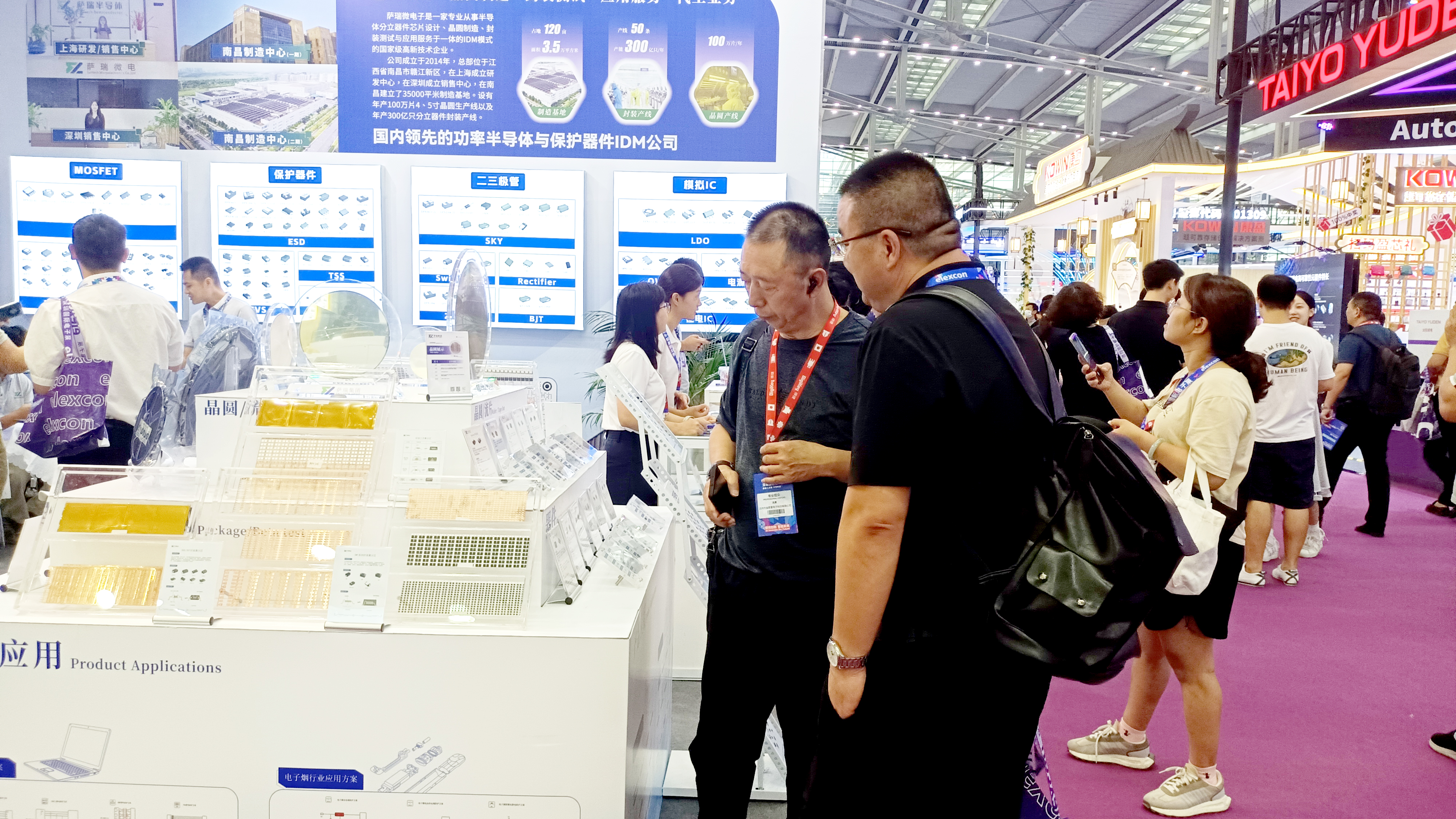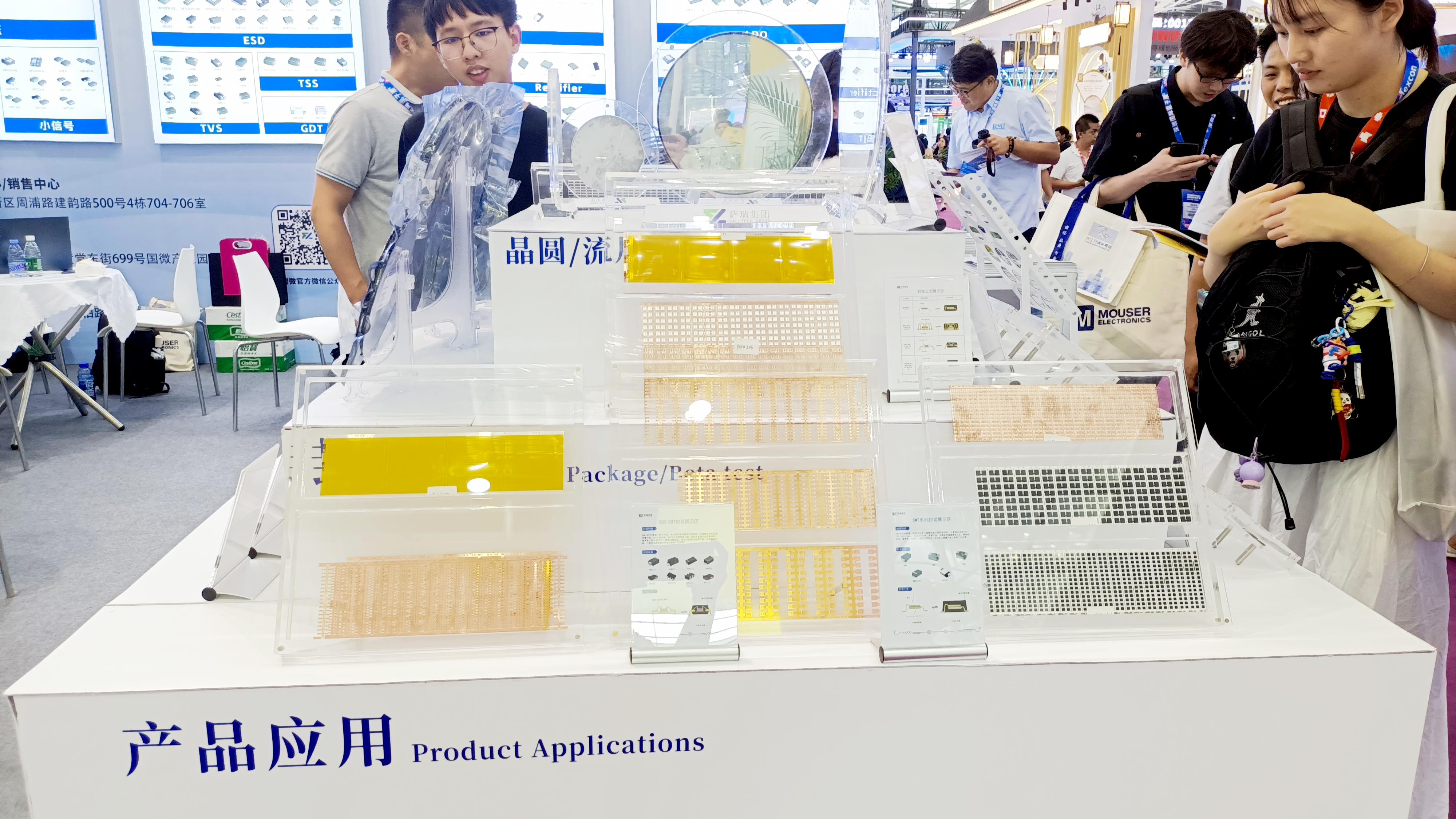 在本次展会中,w88win微电子展示了多款主营产品,包括保护器件、二三极管和MOSFET、模拟IC等。这些产品广泛应用于消费电子、工业控制、通信设备和汽车电子等领域,充分展示了w88win微电子在各个细分市场的深厚技术积累和创新能力。